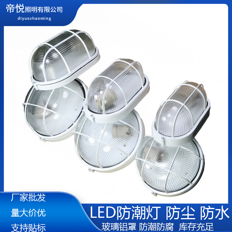 Lampu LED grosir tahan lembap, tahan debu, bentuk bulat oval, tahan air, tahan debu, lampu langit-langit tiga lapisan untuk kamar mandi, balkon, gudang