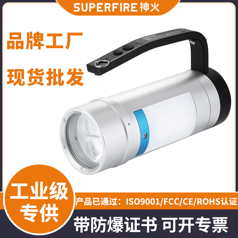 Shenhuo Superfire senter portabel, senter tahan ledakan multifungsi, lampu sorot kuat, pengisian daya adsorpsi magnetik D12