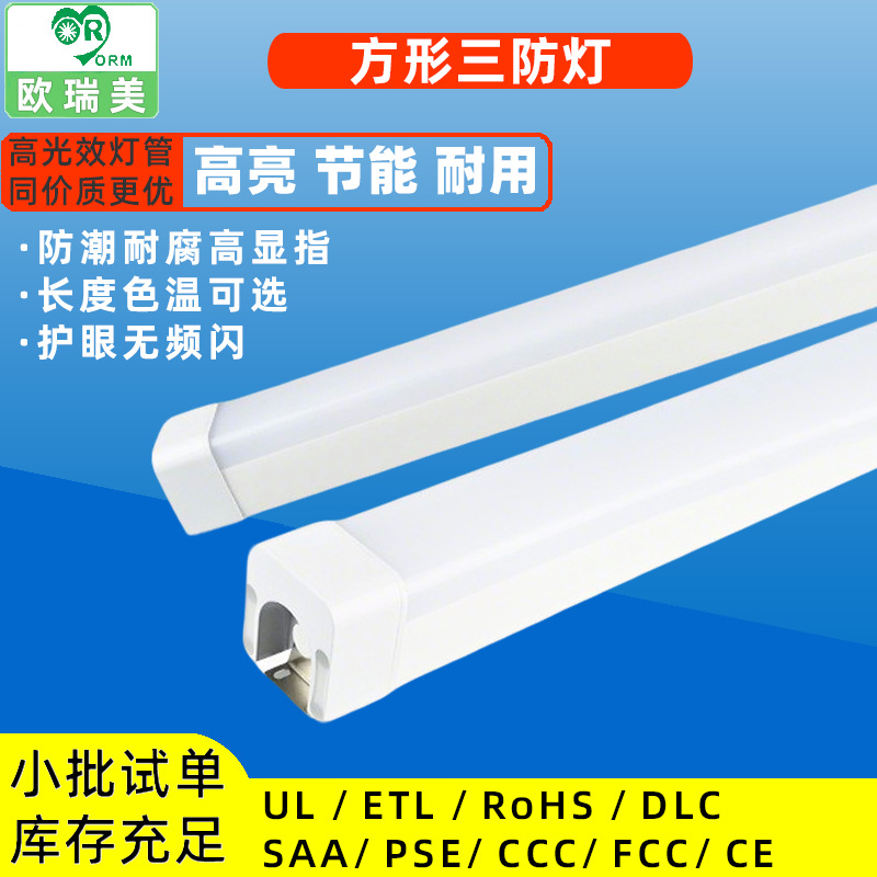 Lampu neon tahan api anti korosi, lampu tabung lampu tiga tahan air IP65/66 tahan suhu tinggi strip aluminium bawaan