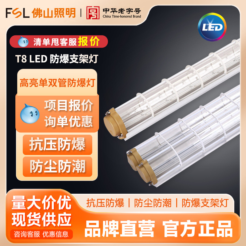 FSL Foshan pencahayaan tahan ledakan cahaya T8LED tunggal dan ganda tabung tahan ledakan braket gudang pabrik stasiun gas lampu tahan ledakan