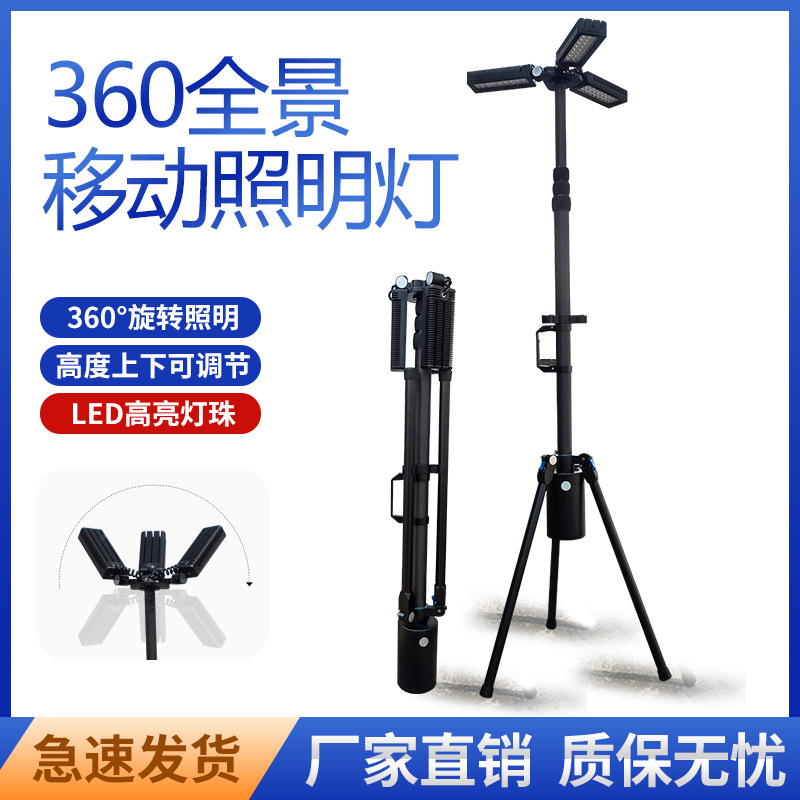 Lampu LED panorama 360 derajat, lampu darurat braket angkat dapat diisi ulang, tripod LED multifungsi