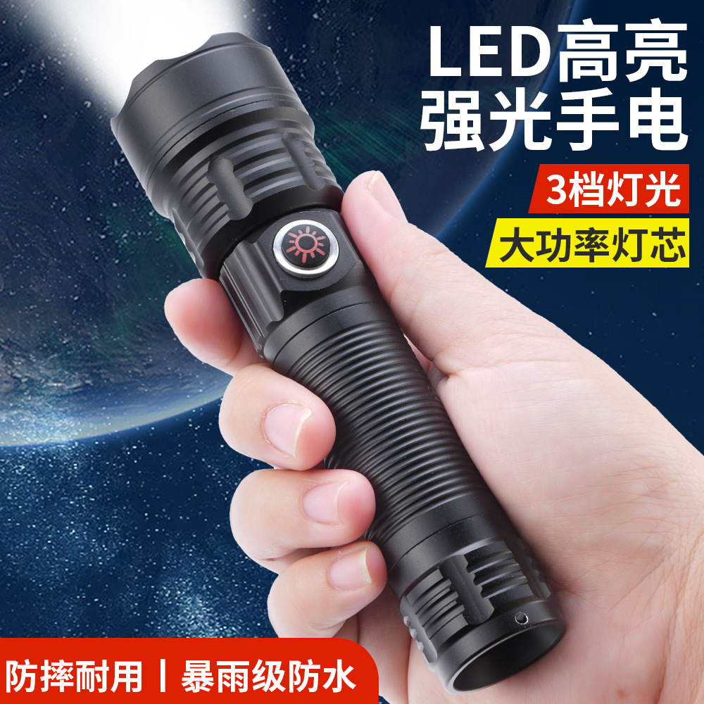 Lintas batas penjualan panas baru cahaya kuat tampilan digital senter luar ruangan pengisian daya super terang fokus darurat pertahanan diri senter rumah tangga