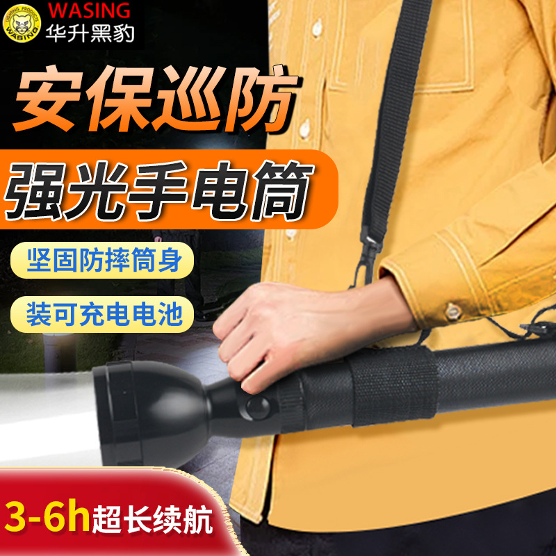 Senter Huasheng Black Panther Strong Light AD3L Isi Ulang untuk Keamanan, Patroli, Pertahanan Diri, Rumah, Luar Ruangan, Jangkauan Jauh