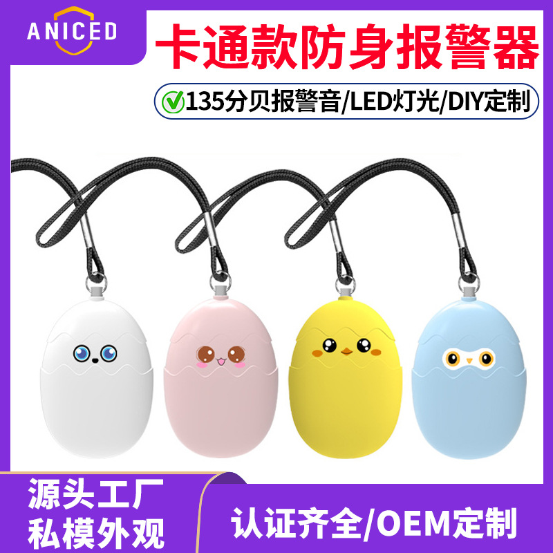 Alarm anti serigala kartun lintas batas 130 dB, alarm pertahanan diri bentuk telur lampu kilat led alarm pribadi