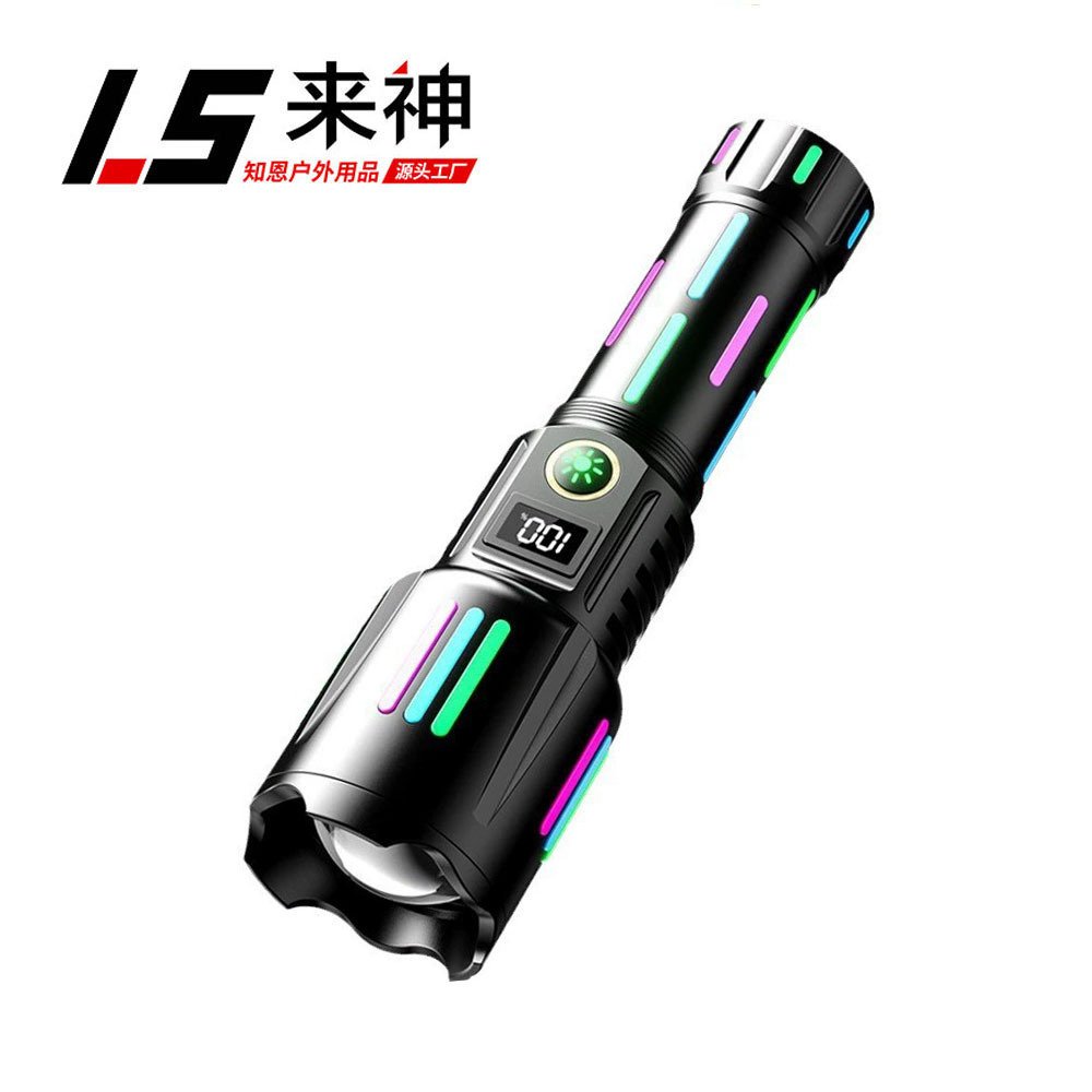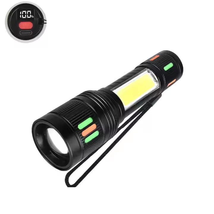 Lampu Senter Cahaya Kuat Laser LED Lintas Batas Putih Tipe-C Charge Zoom Teleskopik Lampu Strip Fluorescent Digital
