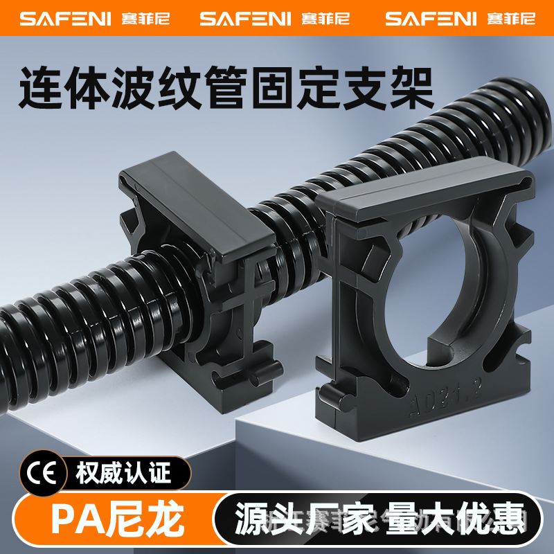 Nilon PA Bellow Plastik dengan Penutup Tetap Braket Pipa Gelombang Nilon Jepit Posisi Kursi Isolasi Tahan Asam Alkali