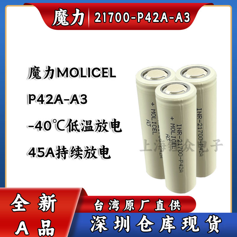 Baterai Molicel baterai lithium suhu rendah 21700p42aA3 produk 4200mah sel baterai berdaya tinggi -40 ° C