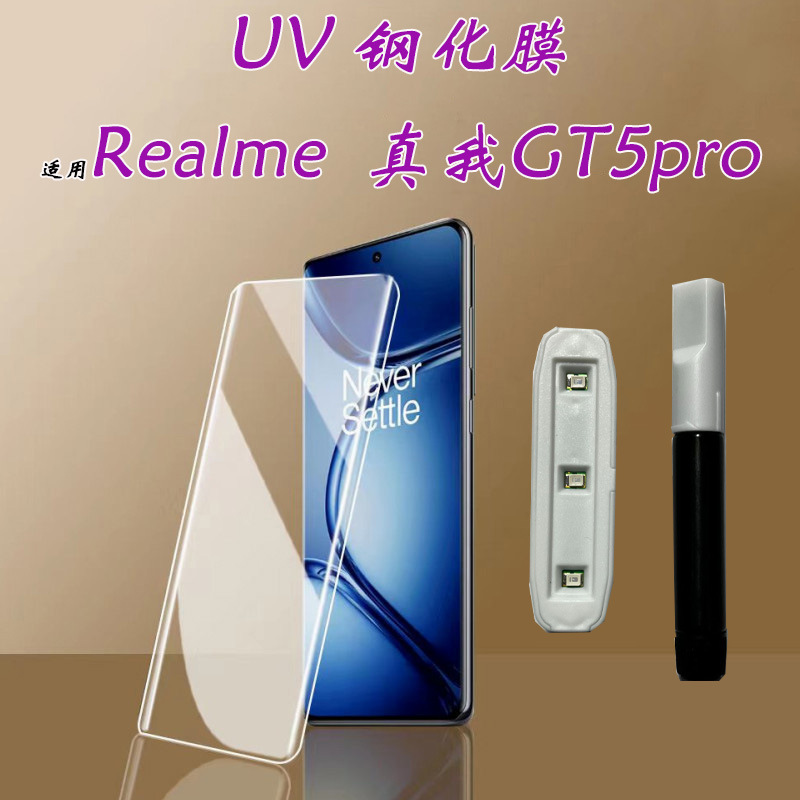 Cocok untuk real me GT5Pro stiker ponsel HD, lapisan pelindung permukaan melengkung lem penuh UV RealmeGT5pro