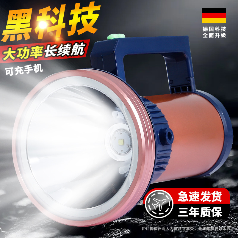 Senter kuat luar ruangan, senter rumah tangga ukuran besar portabel jarak jauh, super terang pengisian daya baterai tahan lama