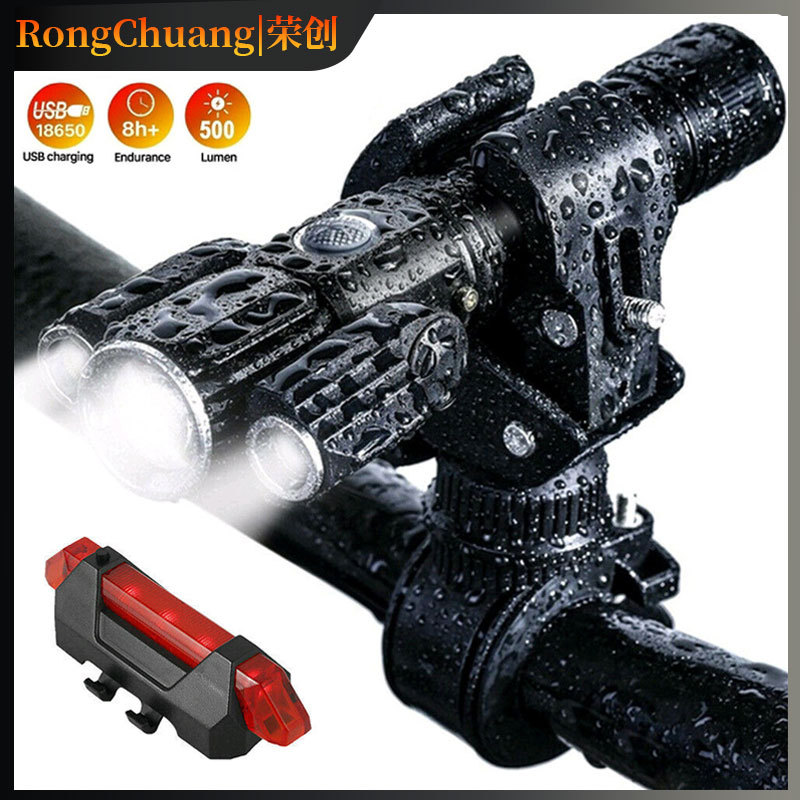 Lintas batas baru lampu senter kuat multi-fungsi pertahanan diri luar ruangan tahan air lampu memancing malam LED isi ulang tiga kepala
