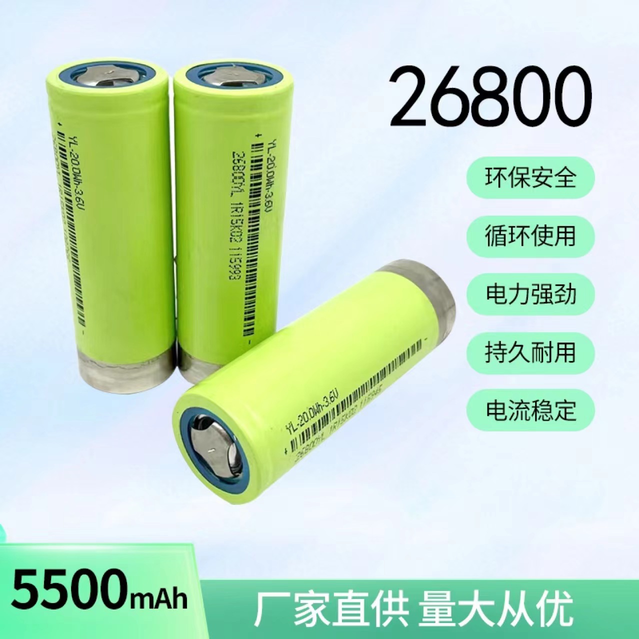 Yuqu sasis mobil baterai lithium, inti baterai bongkar pasang 26800 3.6V 6800mAh 5500mah