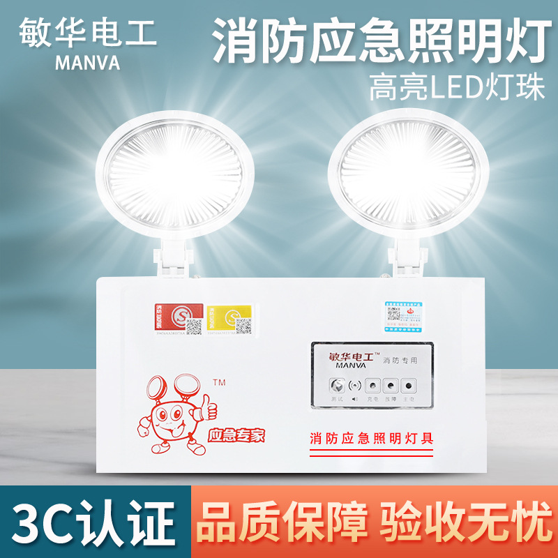 Minhua listrik baru standar nasional 3C bersertifikat api lampu darurat 90 menit berkepala ganda lampu LED melarikan diri lampu darurat