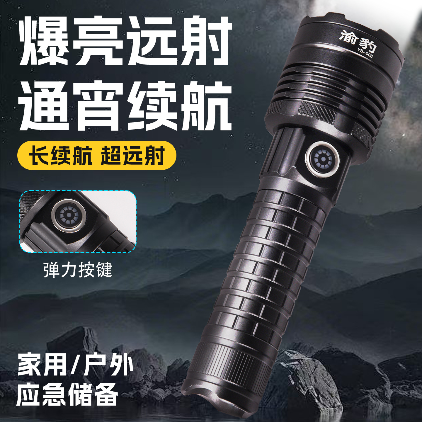 Senter paduan aluminium, cahaya kuat, terang, jarak jauh, multifungsi, tahan lama, luar ruangan, pengisian daya darurat tahan air G400
