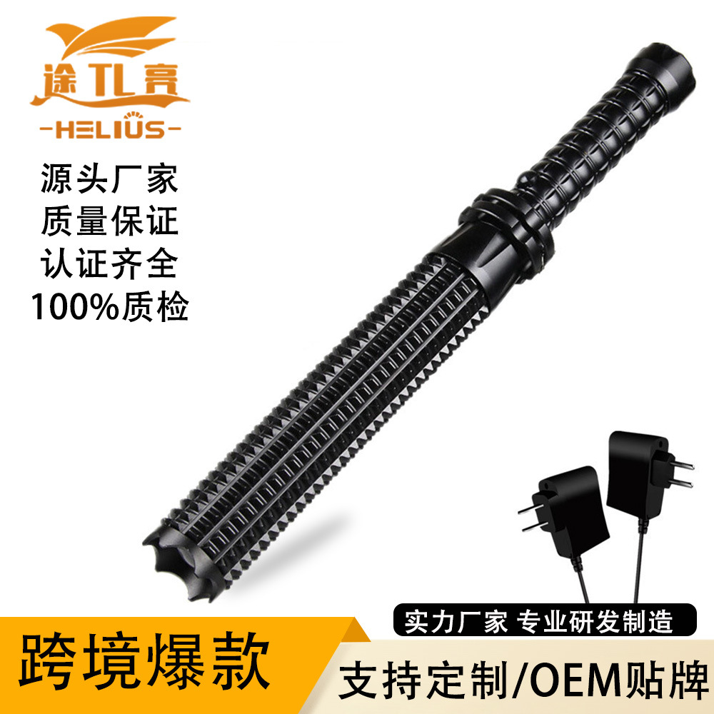 Lintas Batas LED Teleskopik Zoom Batang Gada Charging Cahaya Kuat Lampu Jarak Jauh Senter Super Terang Patroli Keamanan Luar Ruangan