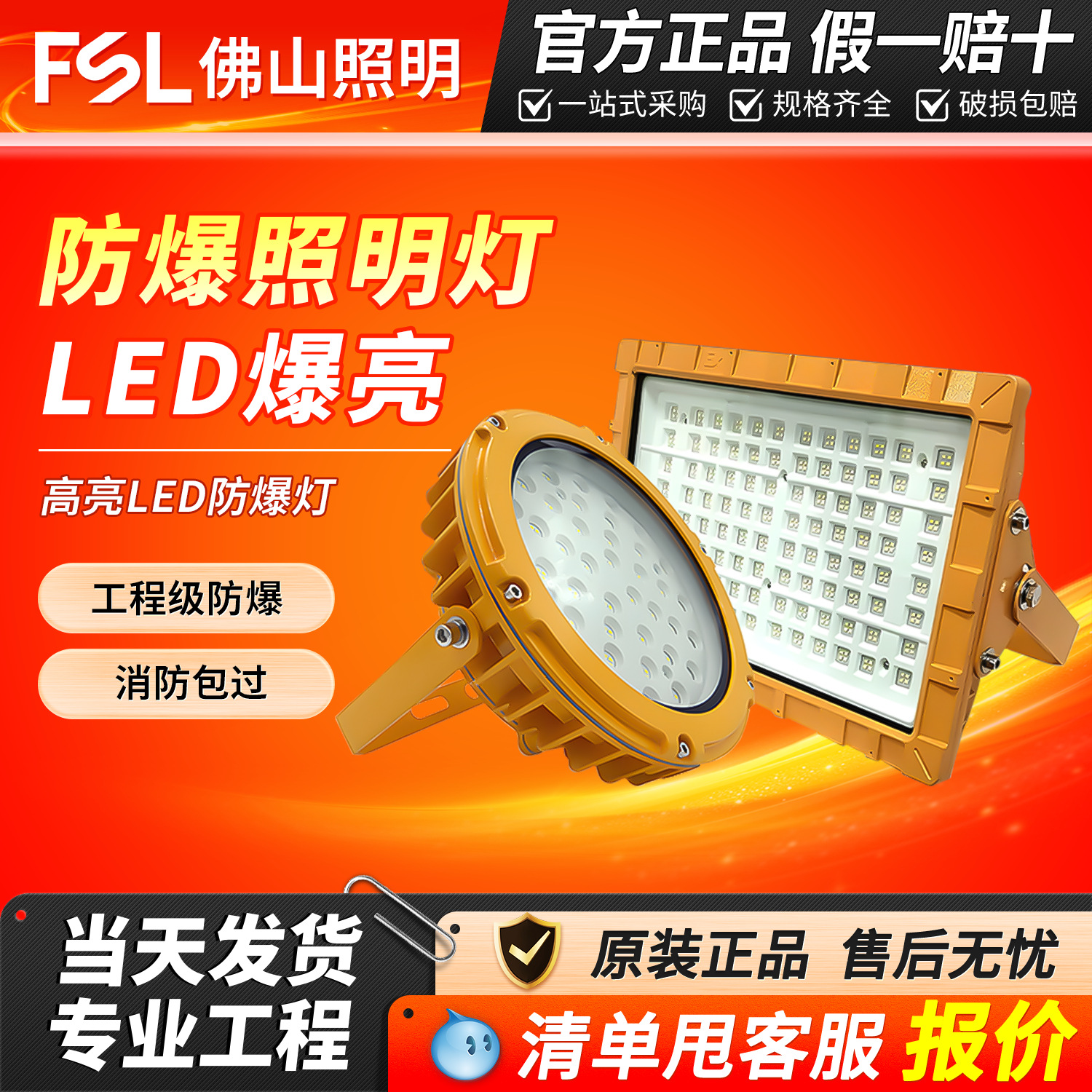 FSL Foshan lampu sorot LED, pencahayaan LED tahan ledakan gudang bengkel khusus stasiun gas anti korosi tahan ledakan