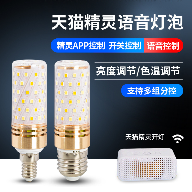 Aimikad aimicarden Tmall Genie bohlam led cerdas, bola lampu pengendali suara E27E14 bola lampu jagung