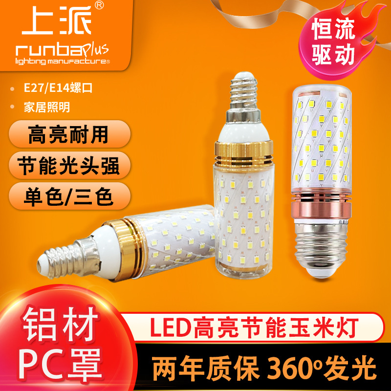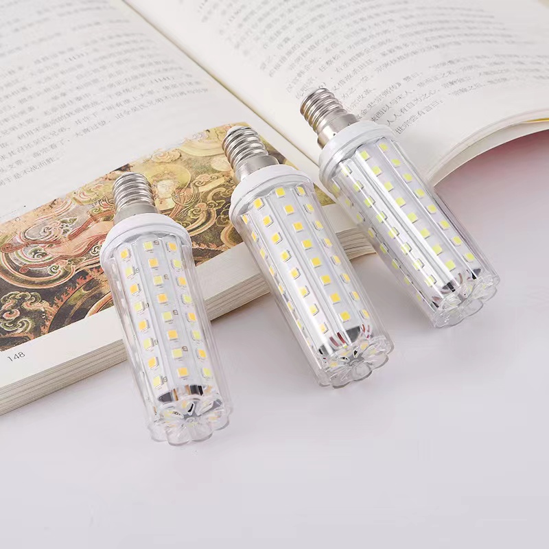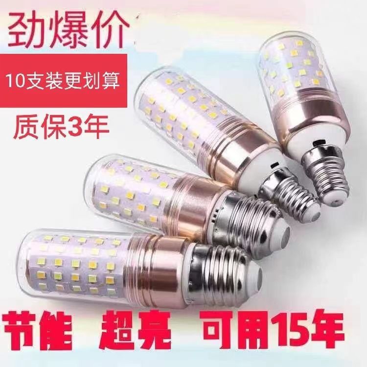 E14 lampu LED bohlam E27 jagung, lampu gantung super terang sekrup kecil rumah tangga, sumber cahaya tiga warna
