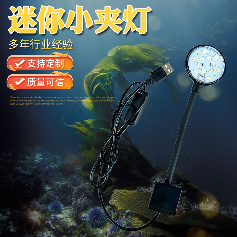 Lampu Tangki Ikan Lampu LED Lampu Tangki Rumput Lampu Hemat Energi Kecil Tahan Air Lampu Penjepit Kecil Mini USB Lampu Tangki Akuarium