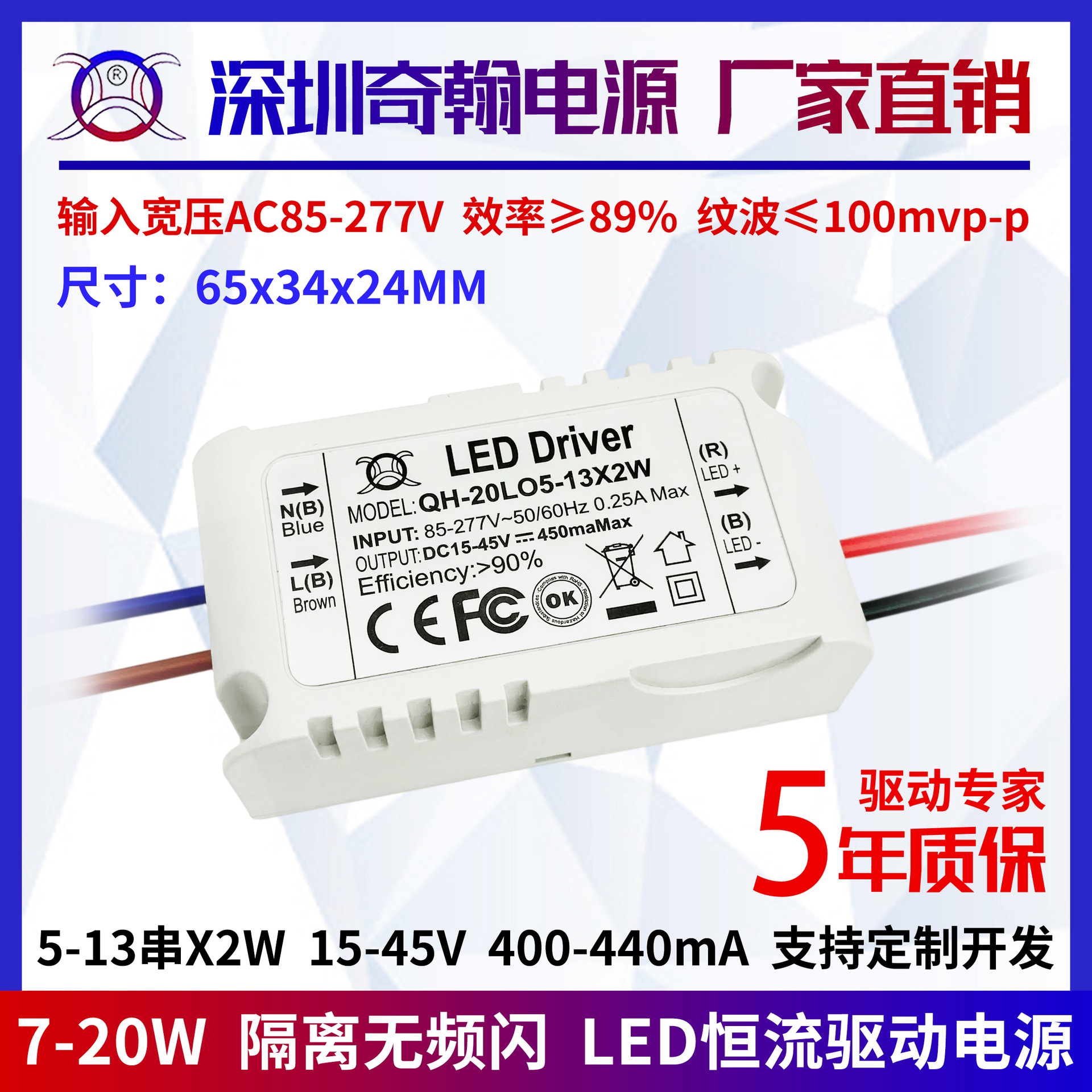 Tidak ada stroboskop 5-13 string tegangan lebar 12w13w14w15w16w18w20w eksternal terisolasi LED arus konstan drive power supply