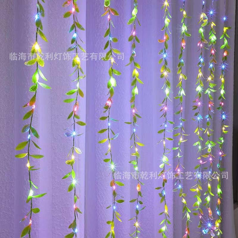 Pabrik Penjualan Langsung Lampu Tirai Rotan Daun Willow Lampu Tirai Tirai Simulasi Lampu Warna-warni Dekorasi Latar Belakang Ruang Daun Hijau Lampu Tali Tembaga LED
