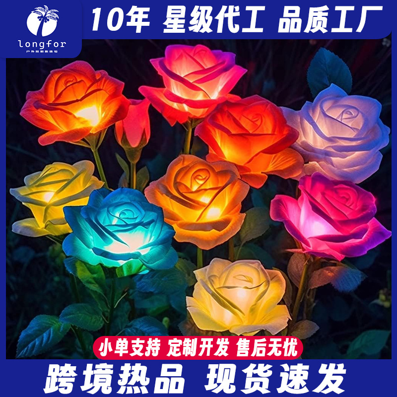 Lampu Bunga Mawar Tenaga Surya 5 Kepala Baru Lintas Batas Luar Ruangan Lampu Bunga Simulasi LED Lampu Lantern di Halaman Rumput Taman