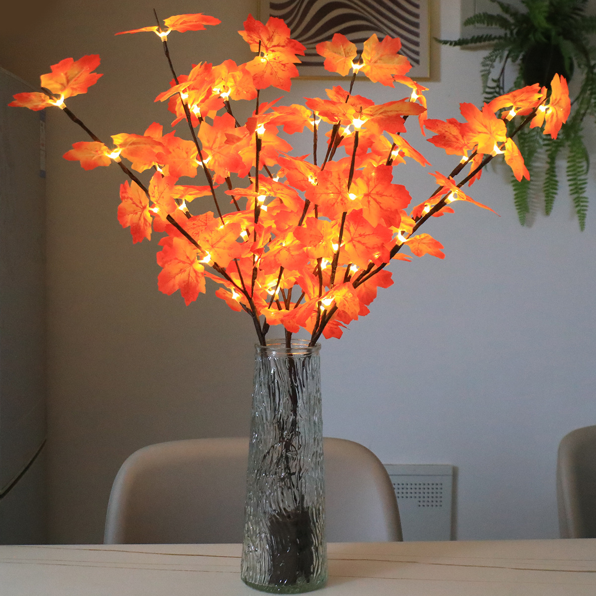 Lampu pohon daun maple berkepala ganda, dekorasi kamar tidur, pesta pernikahan musim gugur panen Natal musim gugur dekorasi pesta rumah