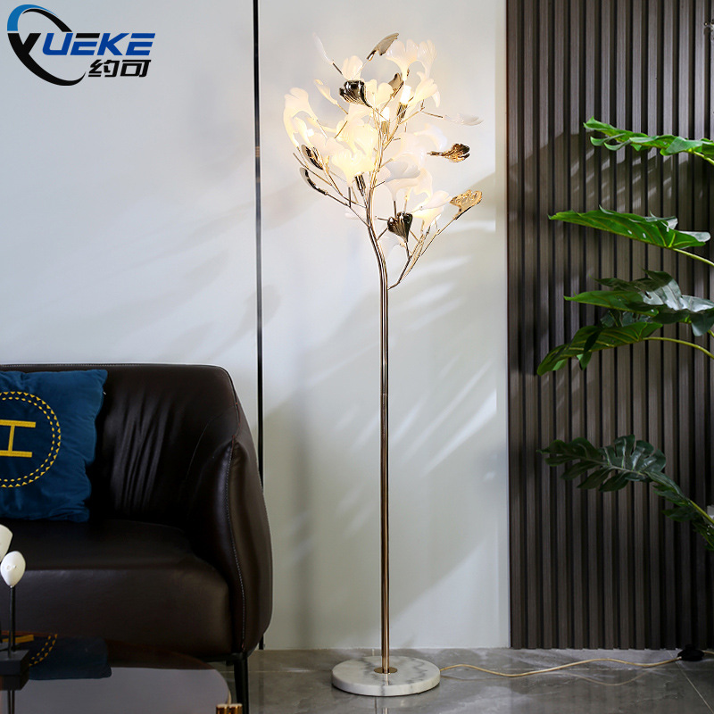 Lampu dekorasi lantai vertikal ruang tamu Nordic, lampu kamar tidur minimalis modern, lampu samping tempat tidur kepribadian kreatif lampu dekorasi daun ginkgo