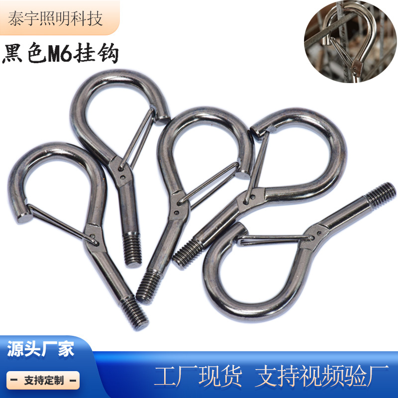 Pabrik grosir dalam stok m6 hitam musim semi gesper lampu tanaman kait kawat tali kunci kabel keselamatan tali kait logam
