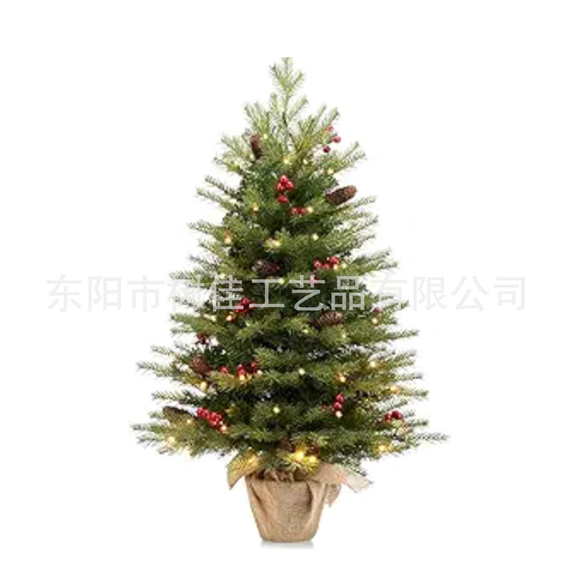 Pra-pencahayaan buatan mini pohon Natal 60cm dengan lampu LED dan Nordic cemara realistis, dasar linen