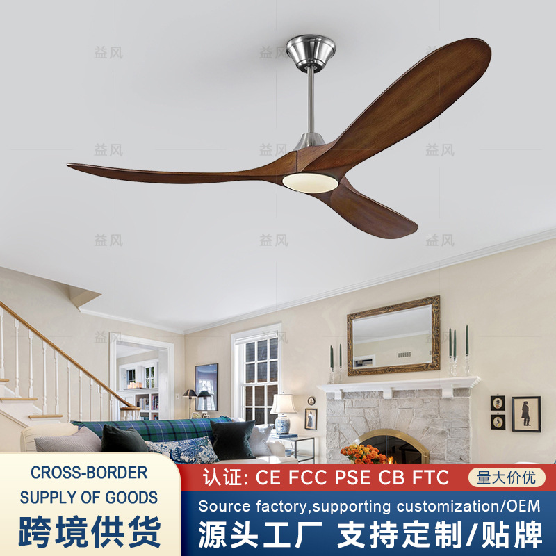 跨境实木风扇灯变频原木质感吊扇大尺寸美式复古吊扇灯工厂批发