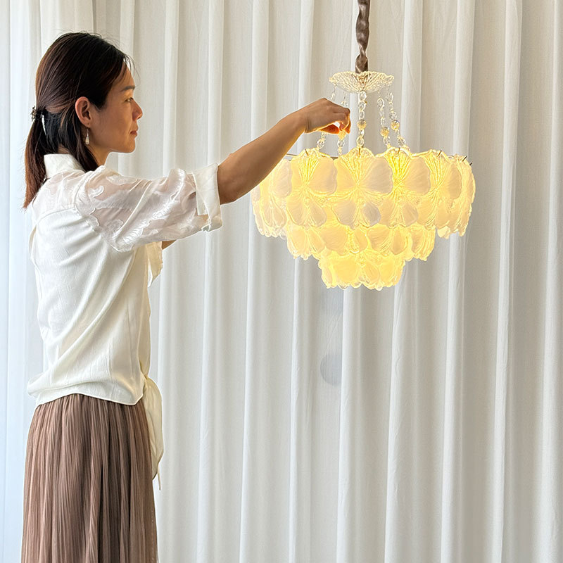 Lampu Chandelier Kamar Tidur Utama Kelas Atas Gaya Krim Gaya Perancis Model Baru 2025 Lampu Katup Empat Daun Kamar Tidur Gadis dengan Suasana Hangat