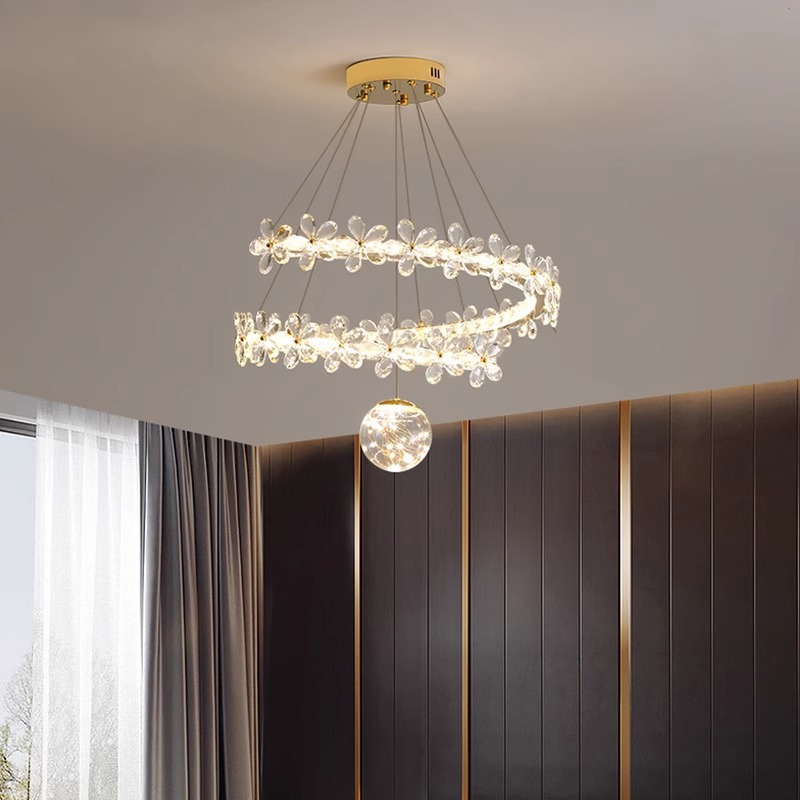 Lampu gantung ruang tamu cerdas Modern sederhana, lampu kristal ruang makan kamar tidur bulat tembaga lampu Vila B & B ruang tamu