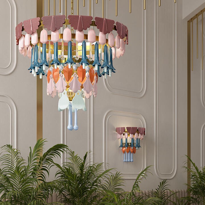 Lampu Gantung Keramik Empat Musim Retro Prancis Ruang Tamu Unik Warna-warni Kamar Model Abad Pertengahan Kamar Restoran Lampu Desainer Villa