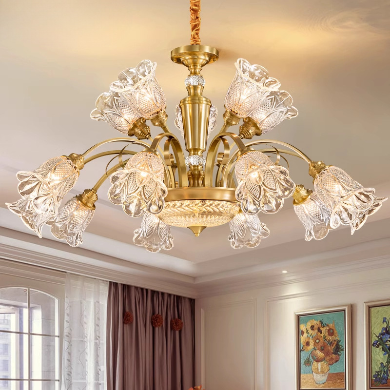 Lampu Ruang Tamu Lampu Tembaga Penuh Gaya Eropa Lampu Utama Lampu Ruang Makan Tiga Warna LED Mewah Mewah Gaya Amerika Lampu Kamar Tidur 222