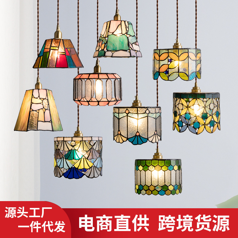 Lampu samping tempat tidur retro gaya Jepang, Tiffany ins kaca berwarna kreatif, kafe, restoran, bar, koridor, lampu gantung kecil