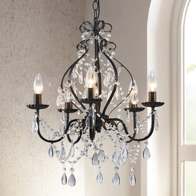 Lampu gantung kristal sederhana Amerika, lampu masuk lorong kecil besi restoran retro hangat untuk rumah kamar tidur