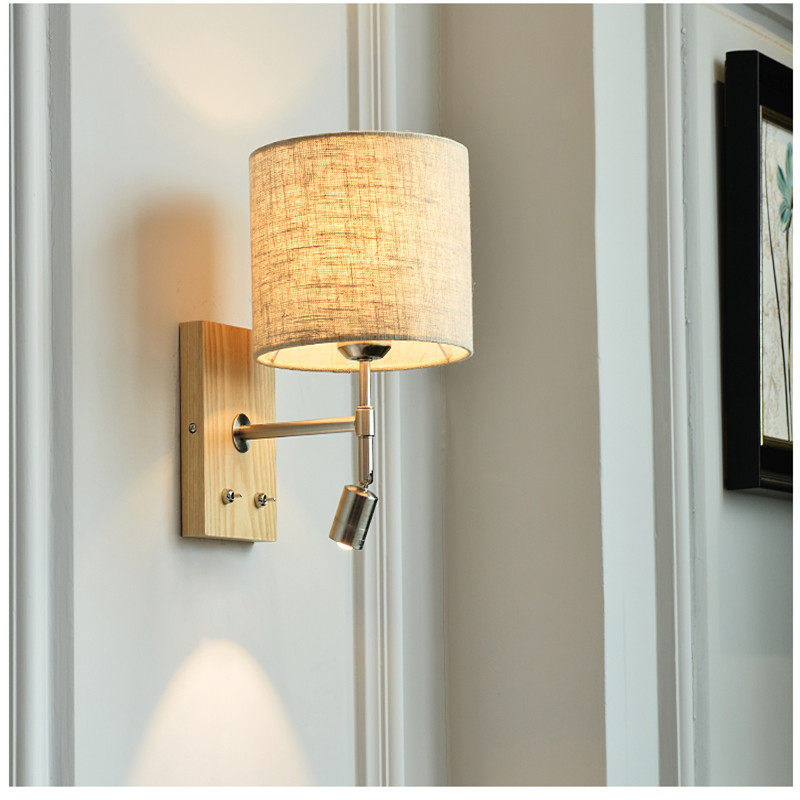 Lampu dinding, lampu samping tempat tidur Nordic sederhana modern kamar tidur lampu baca asli kayu solid led membaca kreatif belajar ruang tamu lampu dinding