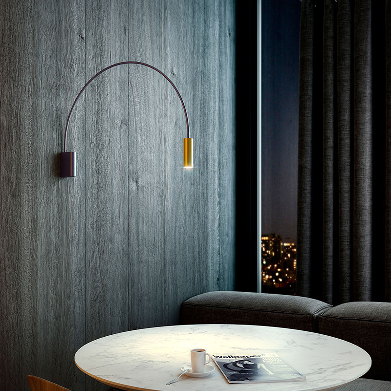 Lampu dinding geometris setengah lingkaran tembaga murni, lampu ruang belajar, lampu samping tempat tidur, koridor, lorong, ruang tamu, Nordik, kreatif, sederhana, lampu dinding berputar