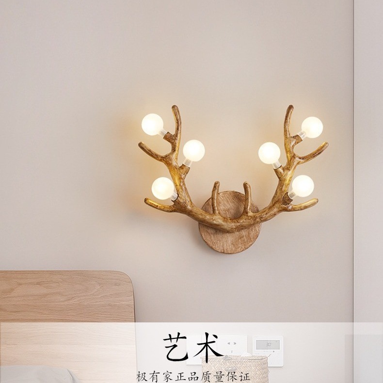 Lampu dinding tanduk lampu cabang pohon, kepribadian kreatif kamar tidur lampu samping tempat tidur gaya Jepang lorong koridor ruang tamu lampu dinding latar belakang