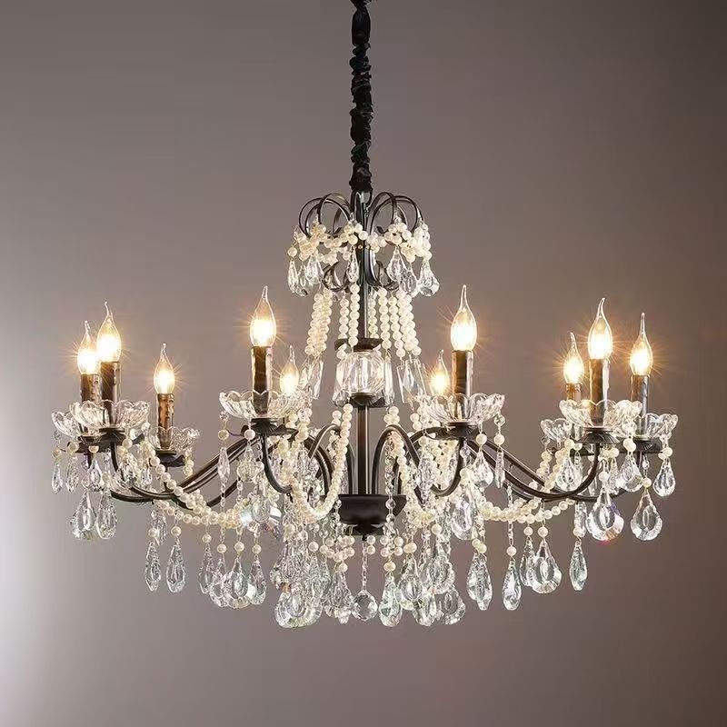 Gaya Baru Eropa Utara Gaya Prancis Ruang Tamu Kamar Tidur Retro Warna Hitam Mutiara Ruang Makan Lampu Gantung Gaya Mewah Kristal Lampu Lampu Zhongshan