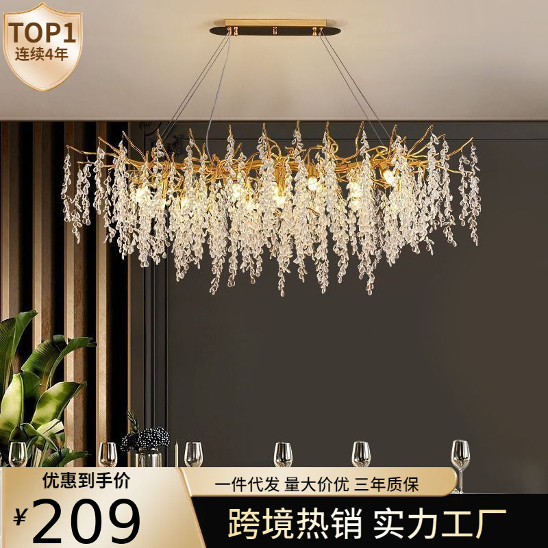 Lampu Gantung Mewah Ringan Gaya Prancis Lampu Ruang Tamu Kristal Rumbai Bentuk Cabang Kreatif