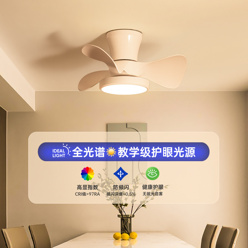 Lampu kipas langit-langit spektrum penuh berwarna krem yang cerdas untuk kamar tidur, lampu kipas langit-langit minimalis untuk ruang makan, perlengkapan lampu kipas rumah tangga ultra-tipis.