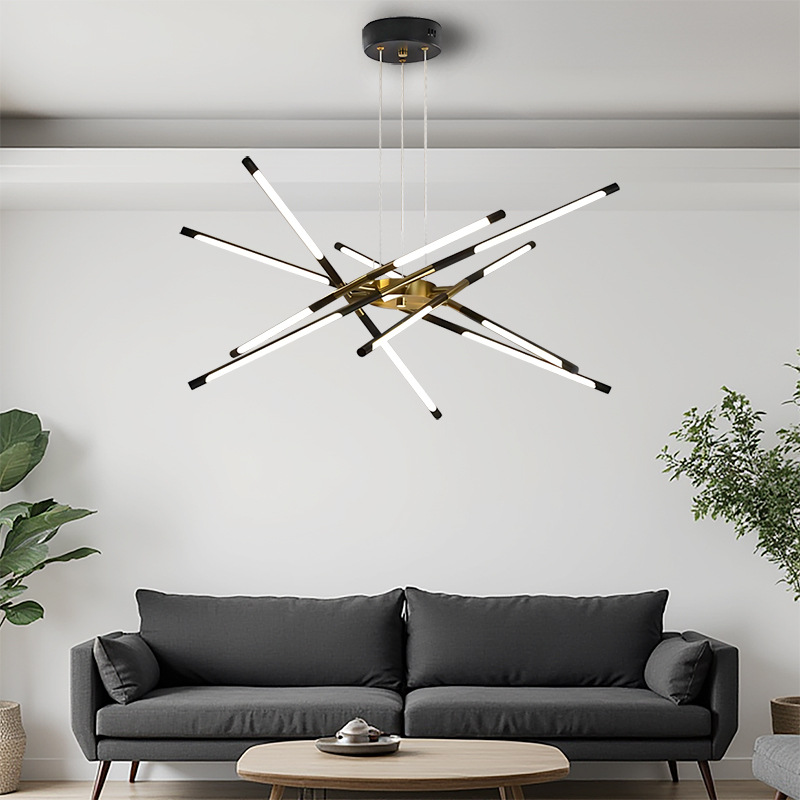 Lampu Gantung Ruang Tamu Besi Garis Minimalis Lampu Ruang Belajar Kamar Tidur Restoran Model Desainer Pakaian Rumah Tangga Lembut Garis Panjang Nordik