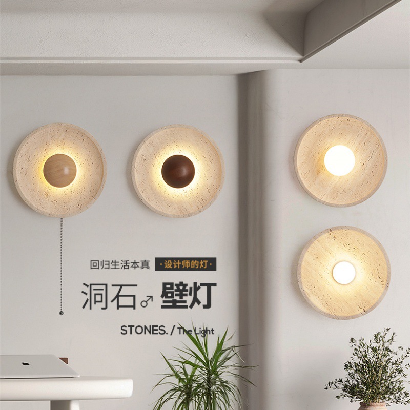Lampu Dinding Tempat Tidur Kamar Tidur Gaya Jepang Lampu Dinding Latar Belakang Batu Kuning Lorong Tangga Restoran Nordik