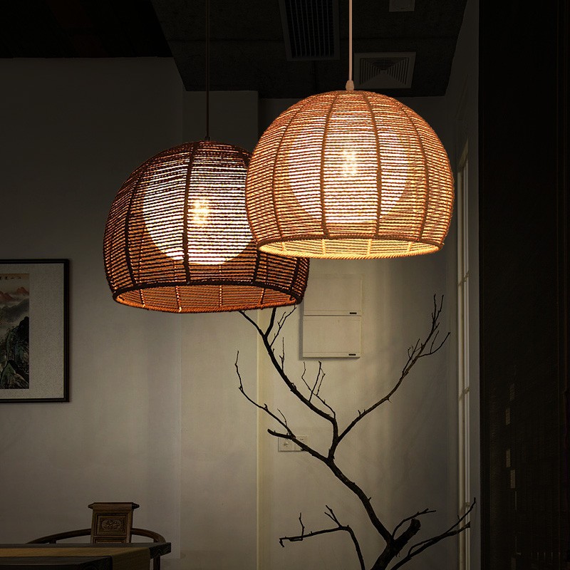 Lampu gantung tali rami gaya Jepang sederhana ruang makan kamar tidur balkon samping tempat tidur B & B pastoral tenunan tangan rotan lampu Asia Tenggara
