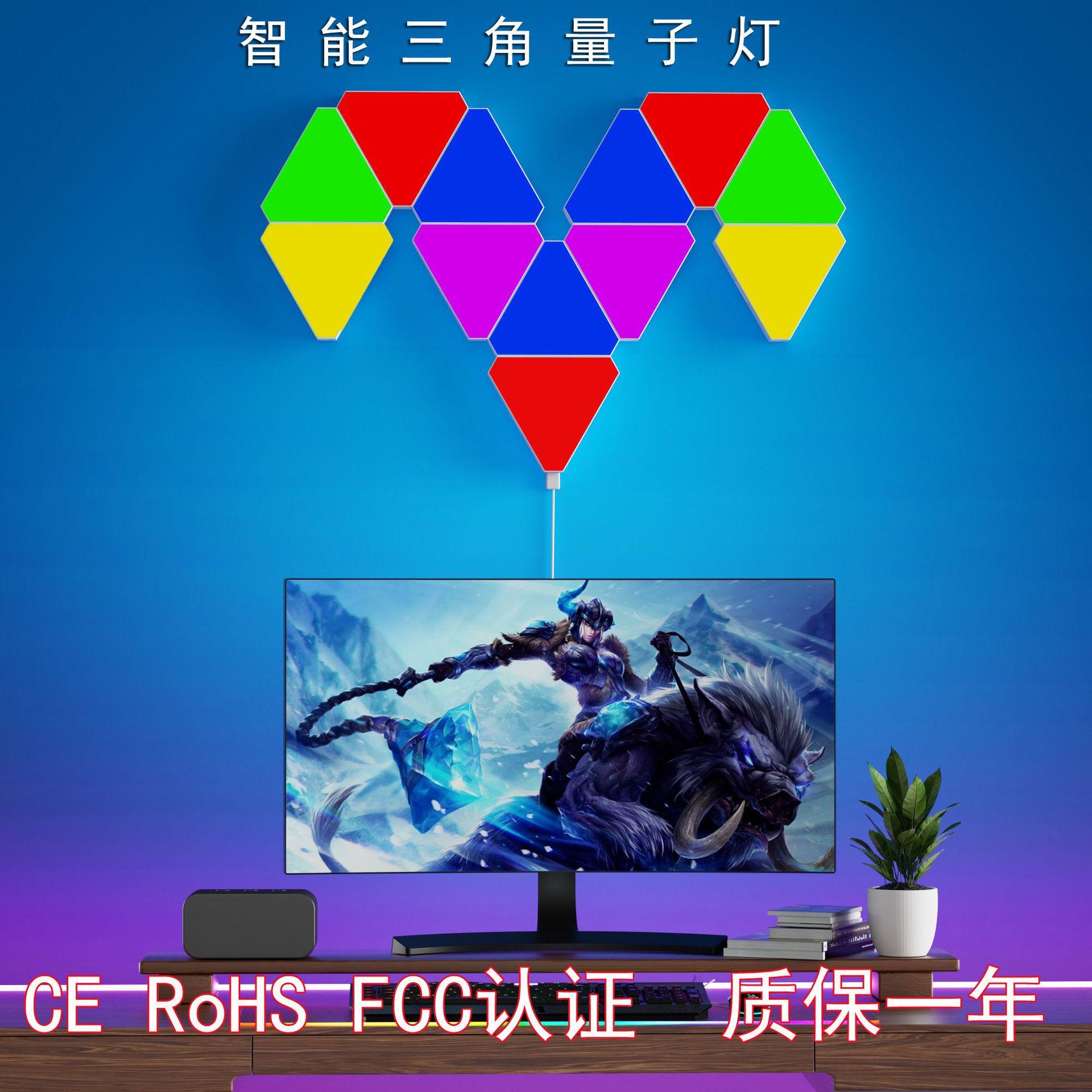 Lampu Dinding cerdas, lampu malam samping tempat tidur, lampu dinding Cerdas gaya Nordik, lampu quantum segitiga, lampu musik irama musik