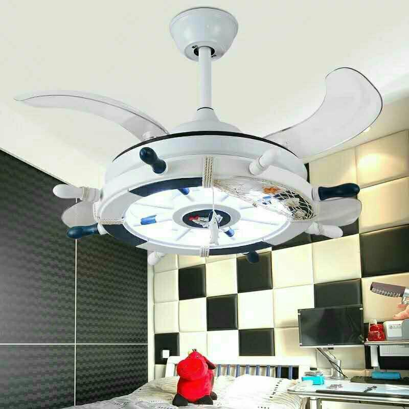 Kipas lampu atap kartun kemudi, lampu kipas langit-langit tak terlihat kartun, lampu anak-anak, lampu Mediterania, kamar tidur, lampu led dengan gantungan lampu