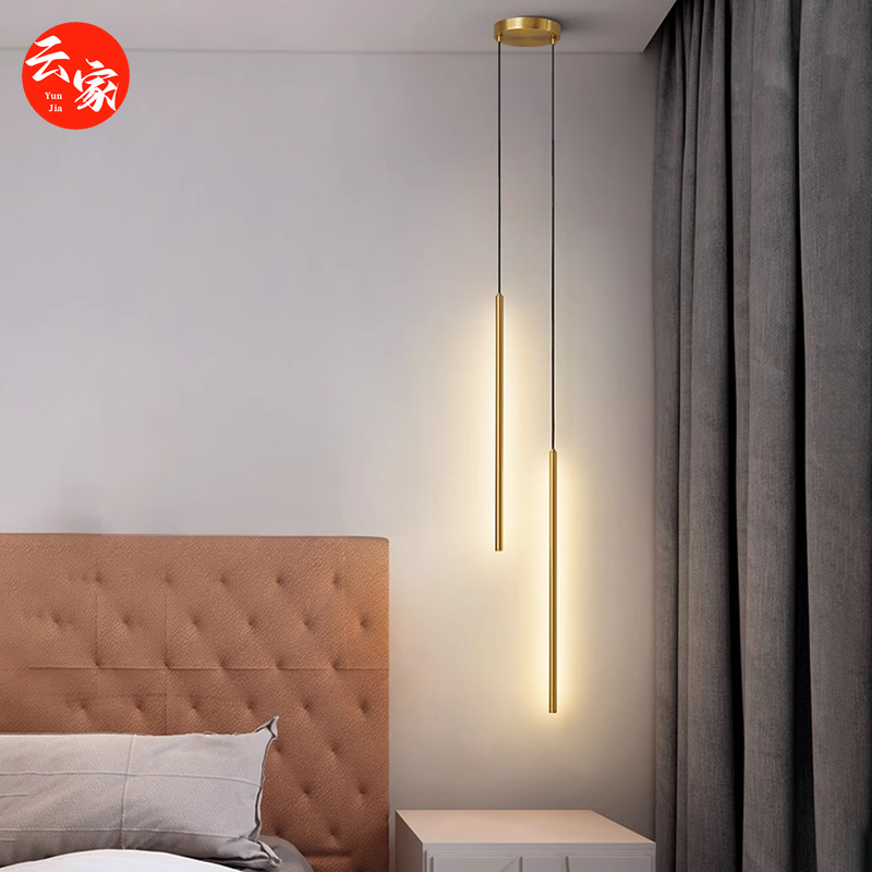Lampu Gantung Strip Panjang Kamar Tidur Tembaga Sederhana Lampu Gantung Dinding Latar Belakang Ruang Tamu Kelas Atas Garis Mewah Ringan Modern