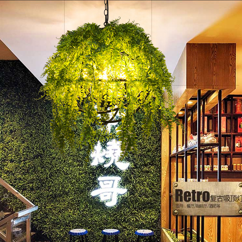 Lampu makan musik unik, lampu dekorasi jaring merah cahaya bar suasana bistro besi gaya industri lampu tanaman gantung
