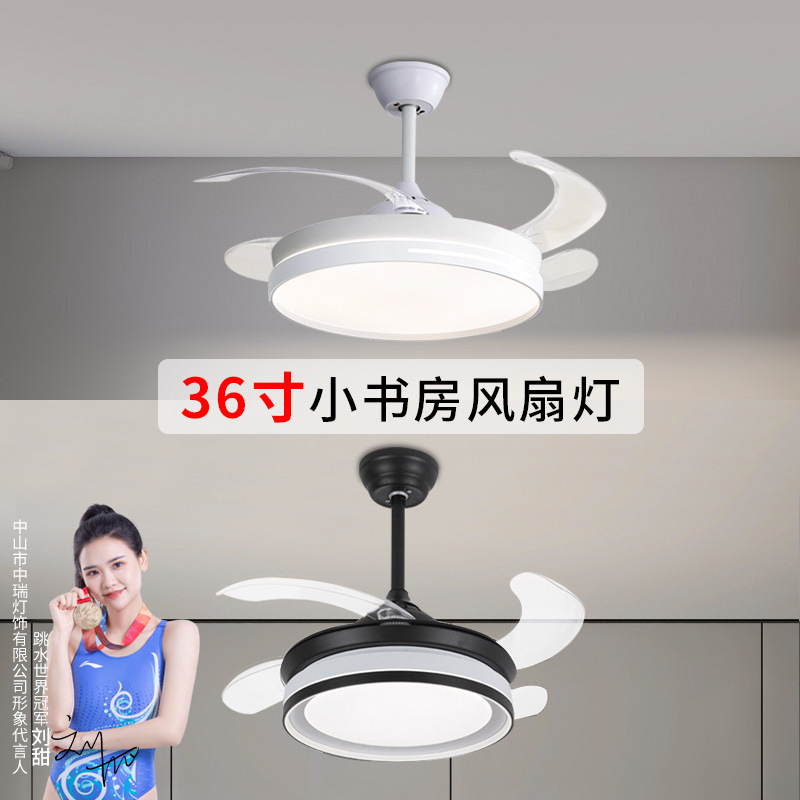 Lampu Kipas tak terlihat 36 inci, alat penerangan plafon kecil ruang makan modern minimalis kristal Nordik variabel frekuensi belajar